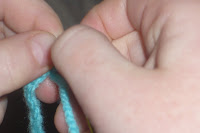 Iida halusi kokeilla virkkaamista ja tietenkin äiti suostui siihen. Hieman on hakusessa noi otteet ja äiti joutuikin lankaa pitää alussa. Mut hyvin puikko teki sitten silmukoita.